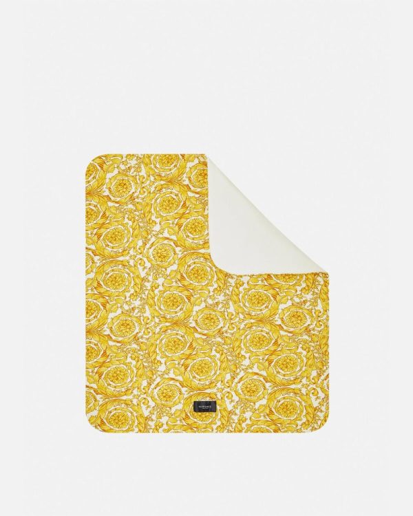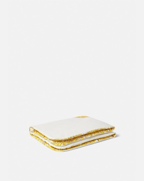 Ultra-soft, this plush blanket is perfect for comforting little ones. One face features a gold-tone Medusa while other has the Barocco Baby print.