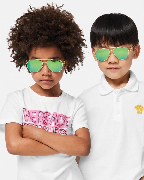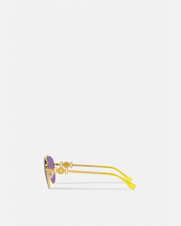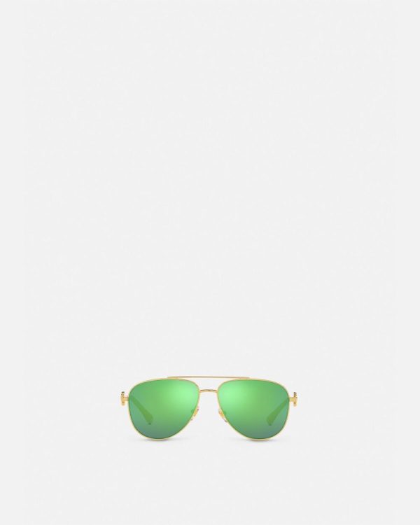 These aviator-shaped sunglasses feature thin metal frames and Medusa hardware at the side.