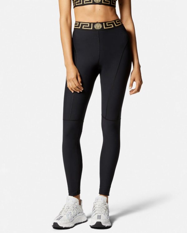An elevated workout staple, these high-waisted gym leggings feature the Greca border waistband with a central Medusa motif.