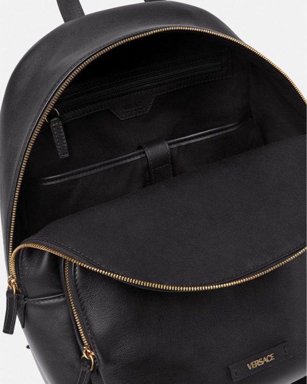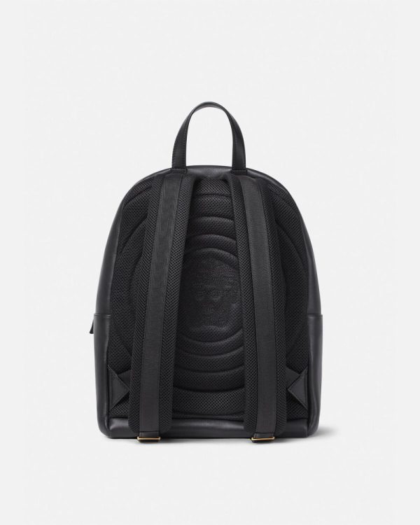 Crafted in Italy from smooth leather, this backpack is adorned with the Medusa Biggie hardware and V-shaped detailing. The practical style has a large front pocket for easy access while the spacious interior has a padded laptop compartment. An embroidered Medusa features on the breathable mesh back panel.