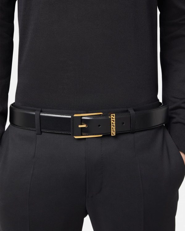 Crafted in supple leather, this classic belt boasts a square buckle and subtle Greca hardware on the belt loop.