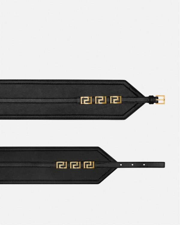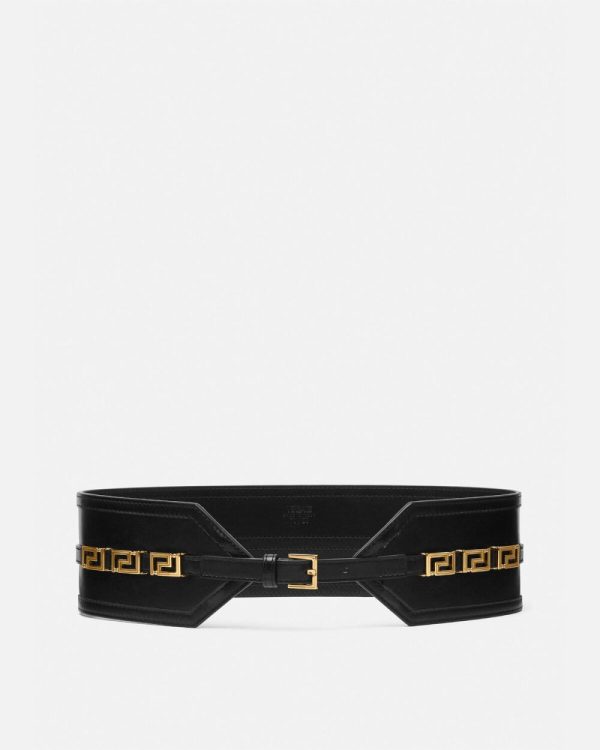Belts | Women Versace Greca Goddess Waist Leather Belt Black