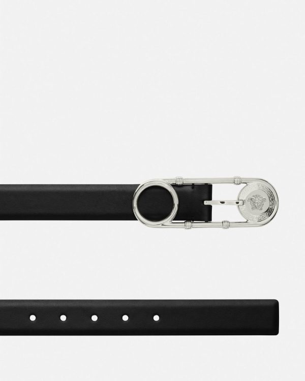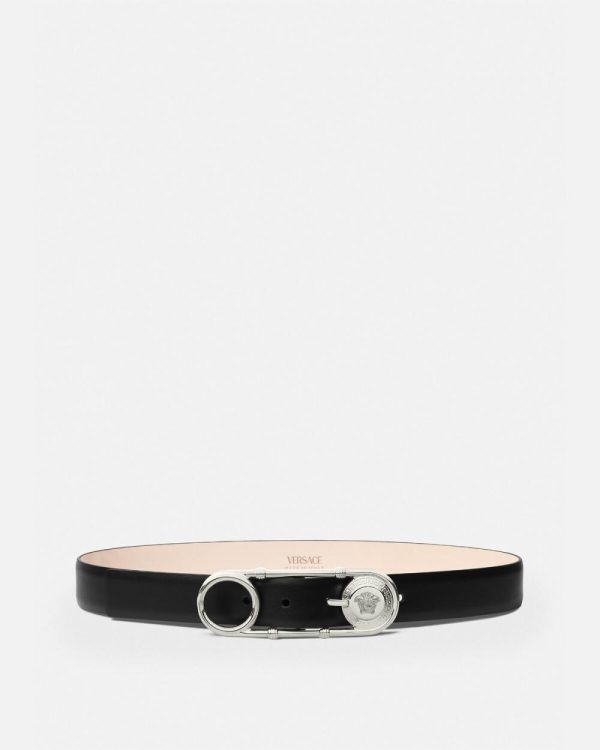 Belts | Women Versace Safety Pin Leather Belt Blacksilver