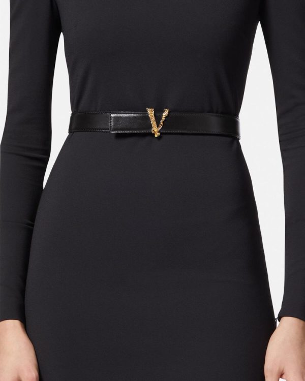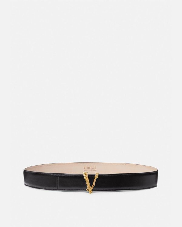 Crafted from smooth leather, this belt features a Barocco V with engraved acanthus leaf detailing.