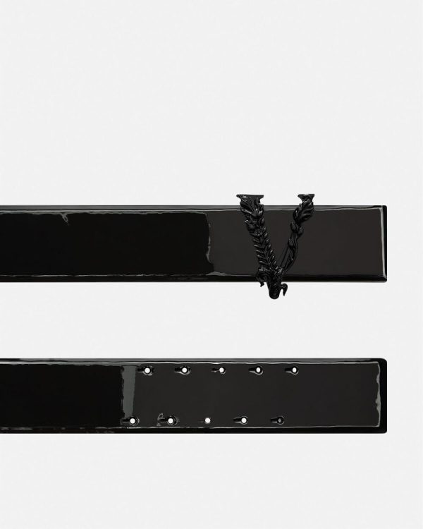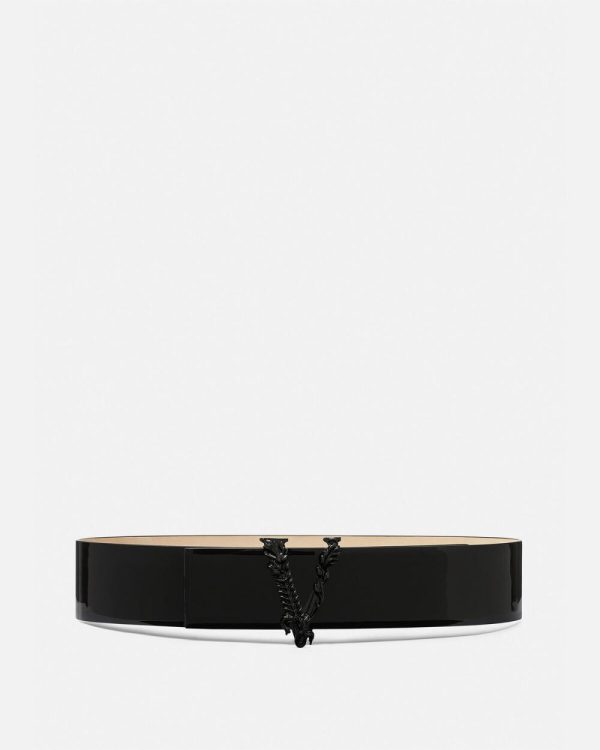 A high-waist Virtus leather belt with a patent finish.