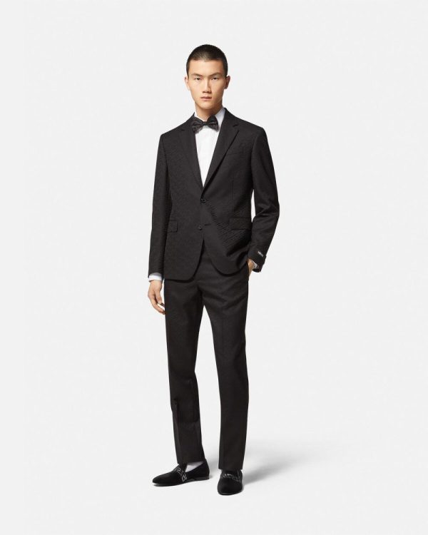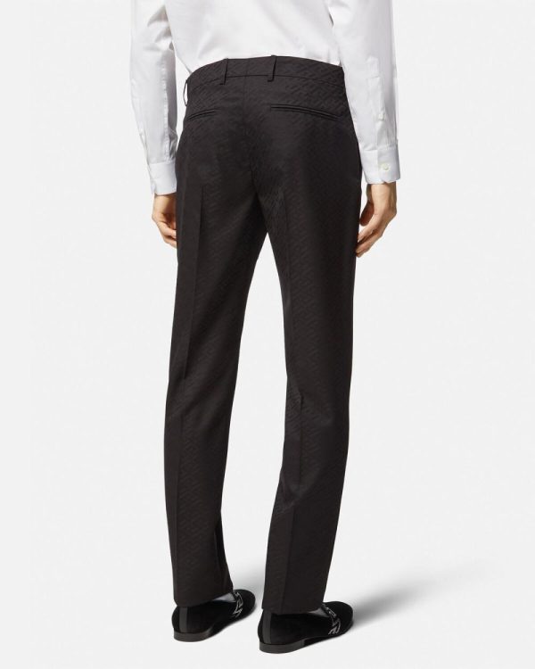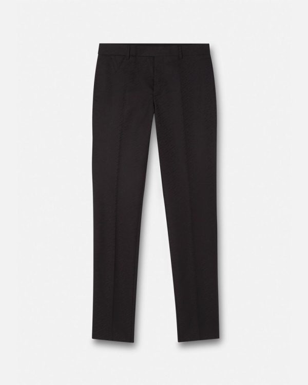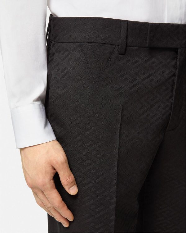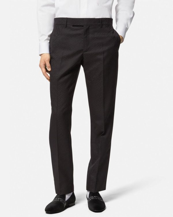 A Versace take on an evening staple, these tailored pants features a tonal La Greca jacquard pattern with a lurex finish in a slim fitting style.