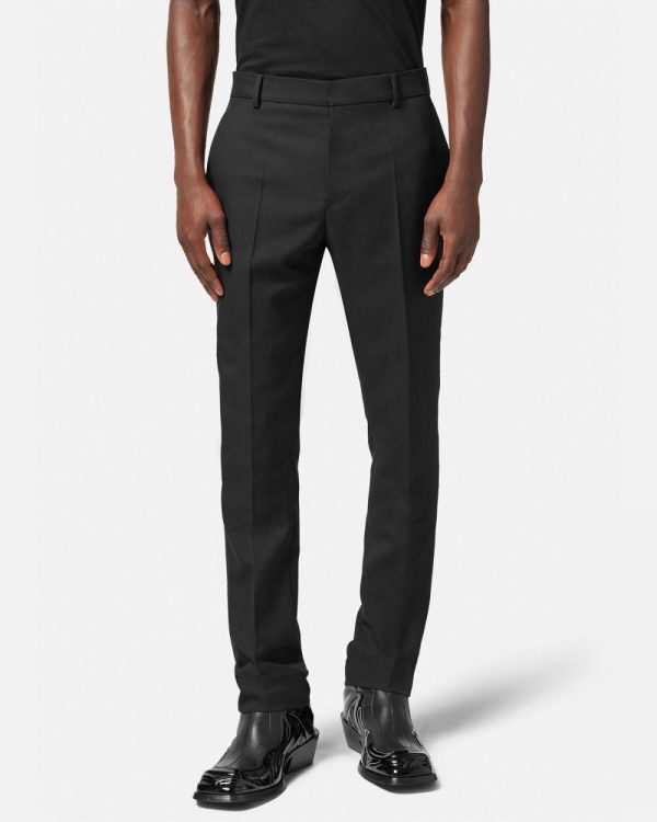 These wool formal trousers have a slim-fit and are detailed with a tailoring label at the back welt pocket. The pair can be worn with a matching blazer.