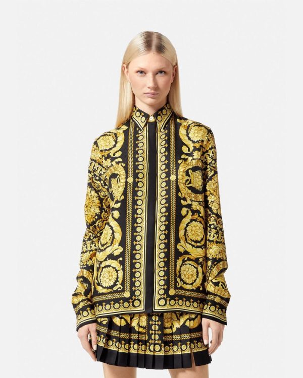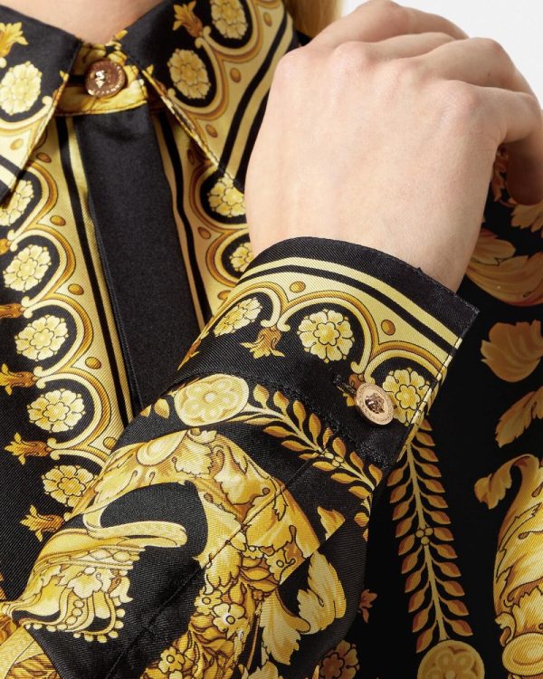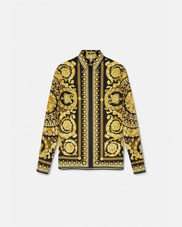 A recurring brand motif, this long-sleeve shirt features the Barocco print and is crafted from pure silk. A single Medusa button accents the button-down style.