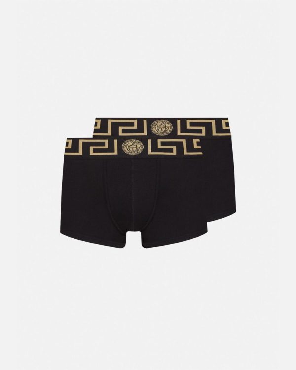 A set of 2 cotton trunks featuring the Greca border and a central Medusa motifs on the elasticized waistband. For hygiene purposes we advise to try on this item with personal underwear underneath.