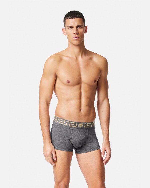 Boxers | Men Versace Greca Border Trunks -Pack Blackgray