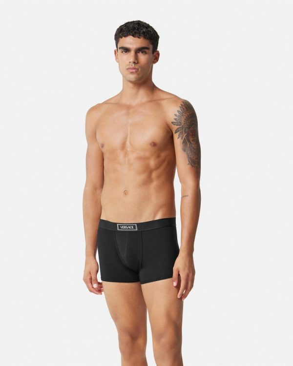 Cotton trunks featuring a ’90s Versace Logo label at the front. For hygiene purposes we advise to try on this item with personal underwear underneath.