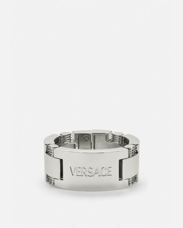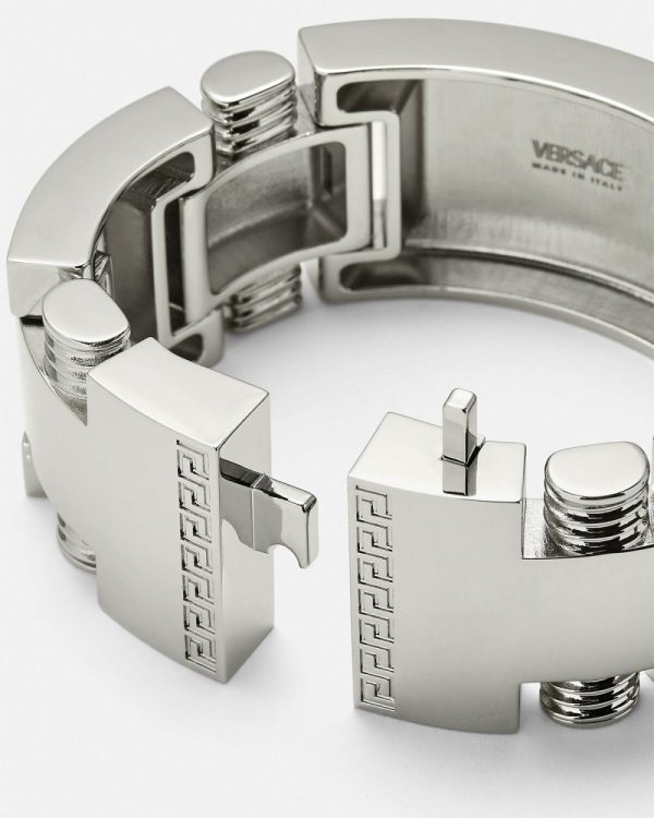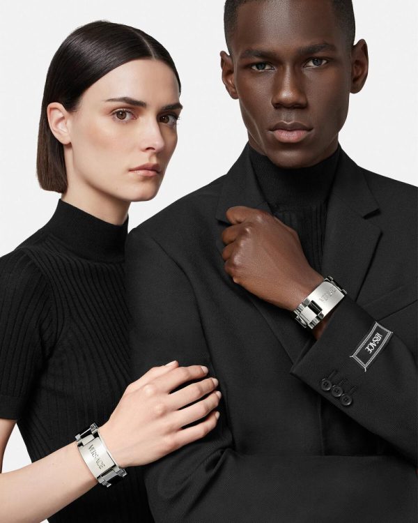 This wide-linked bracelet features a central logo engraving and is detailed with a Greca engraving at the closure. All Versace jewellery products are lead and nickel free. All materials are hypoallergenic.