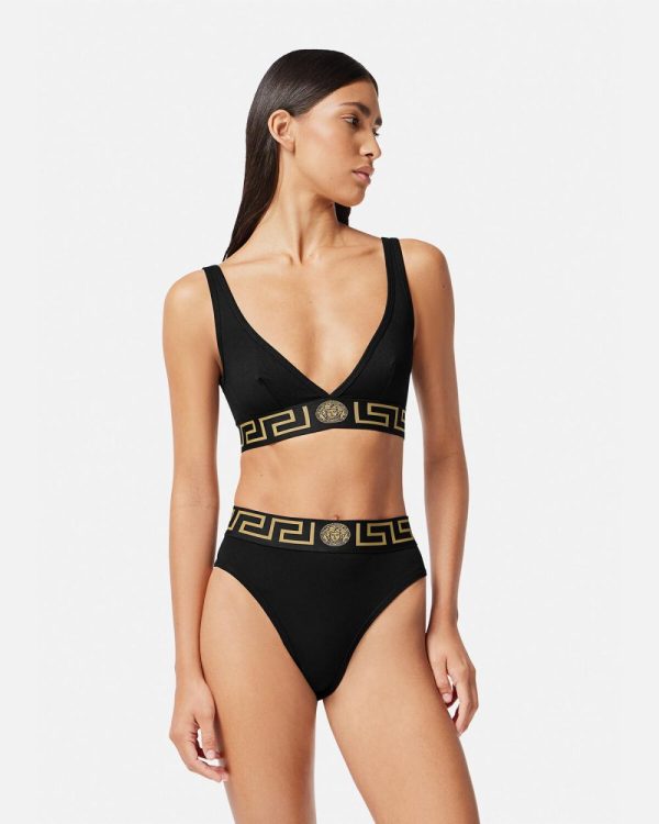A soft cotton bralette featuring the signature Greca border waistband with a Medusa motif.