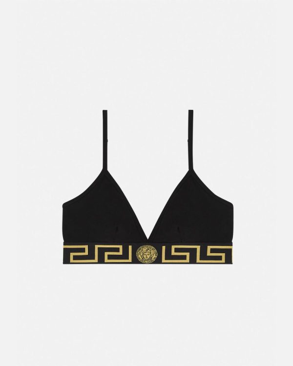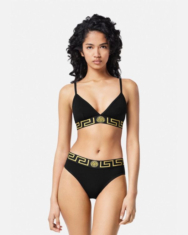 This cotton jersey triangle bralette is detailed with the signature Greca border waistband and Greca embroidered adjustable shoulder straps.
