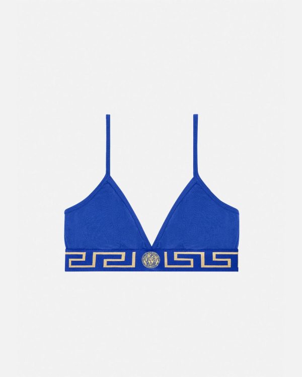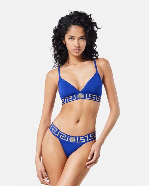 This cotton jersey triangle bralette is detailed with the signature Greca border waistband and Greca embroidered adjustable shoulder straps.