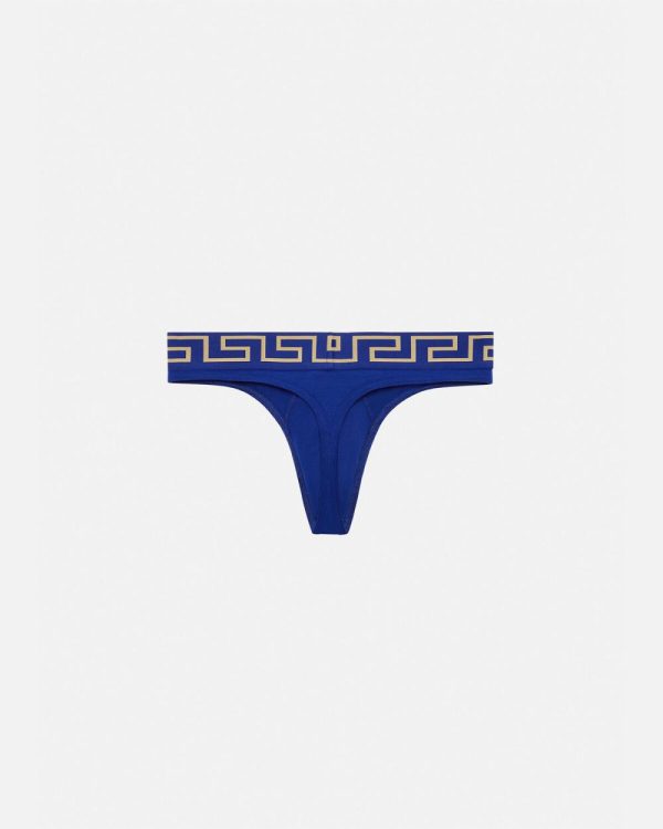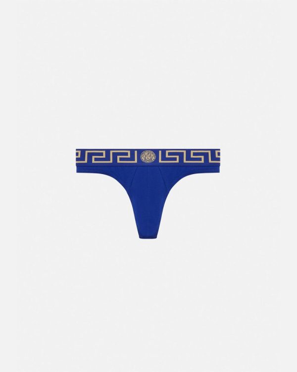 These stretch cotton thong showcase a central Medusa motif at the Greca border elasticized waistband. For hygiene purposes we advise to try on this item with personal underwear underneath.