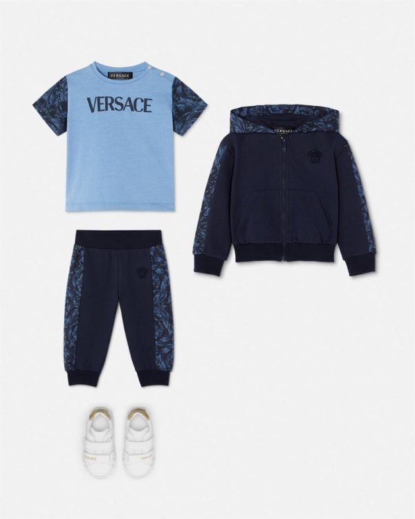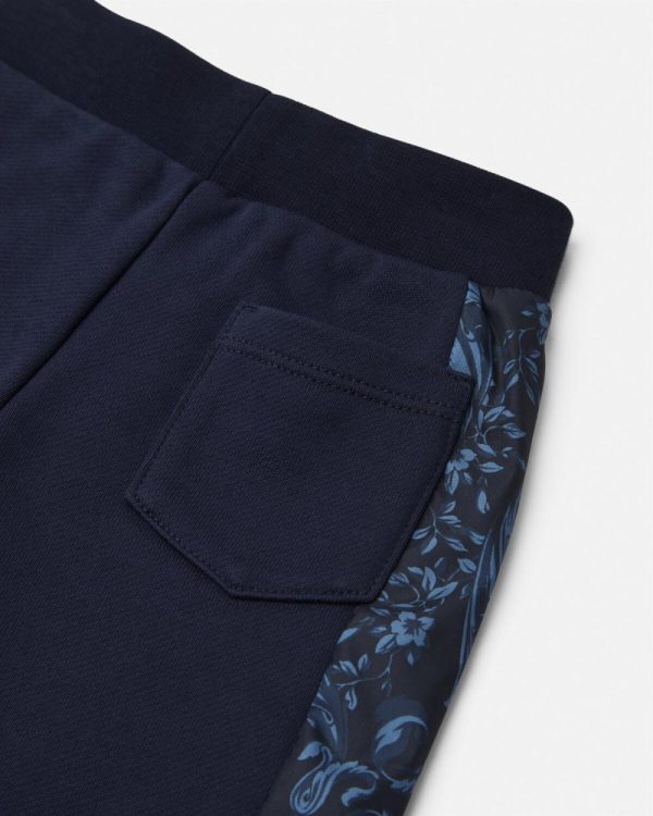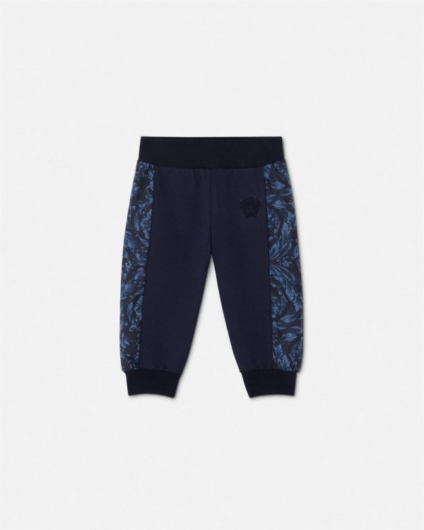 Stretch-jersey sweatpants perfect for play dates, featuring side Barocco Kids nylon print panels and an embroidered Medusa Kids motif.