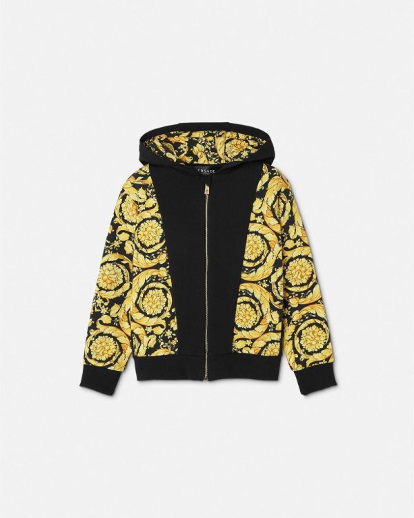 This cotton-jersey hoodie features the Barocco Kids print on the sleeves and hood, complete with Medusa hardware.