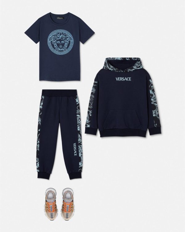 These cotton jersey sweatpants feature a stenciled rendition of the Barocco print along the sides, and are finished with an elastic waistband and cuffs.