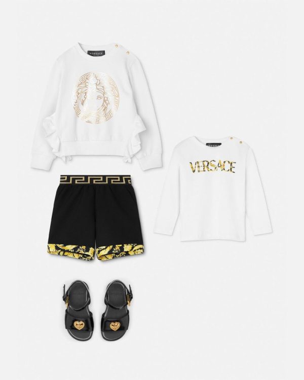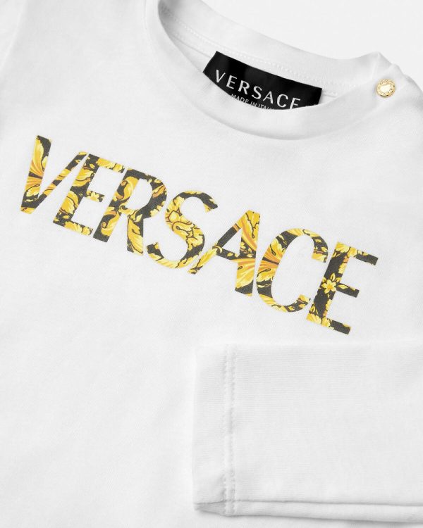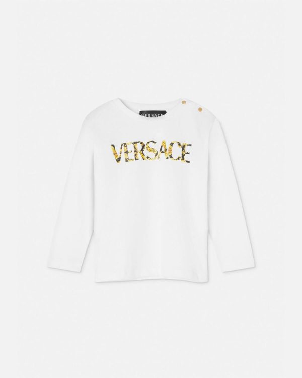 This soft cotton jersey T-shirt is a versatile piece for the little ones featuring a Versace Logo in the Barocco Kids print and a snap button closure at the shoulder for easier removal.