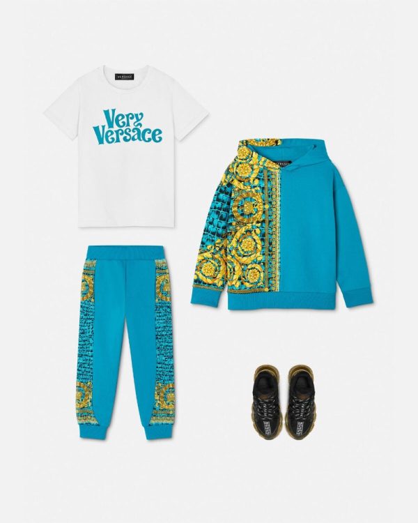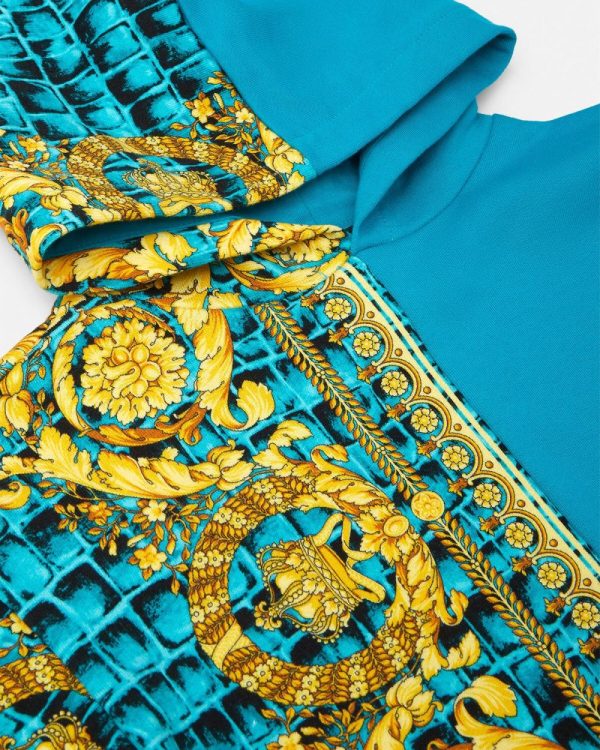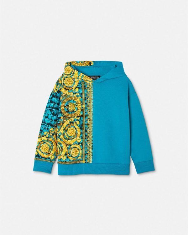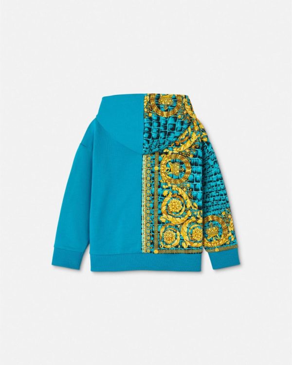 This cotton jersey hooded sweatshirt features the Baroccodile Kids print on one half and ribbed hem and cuffs.