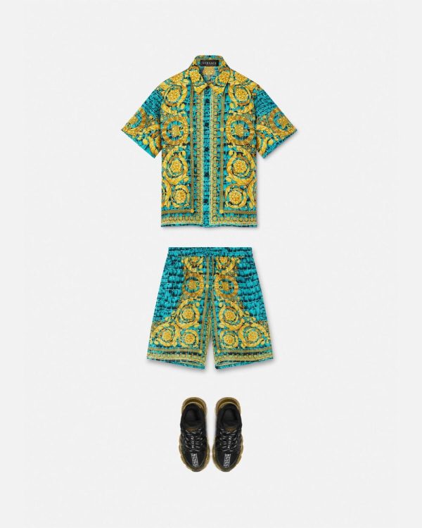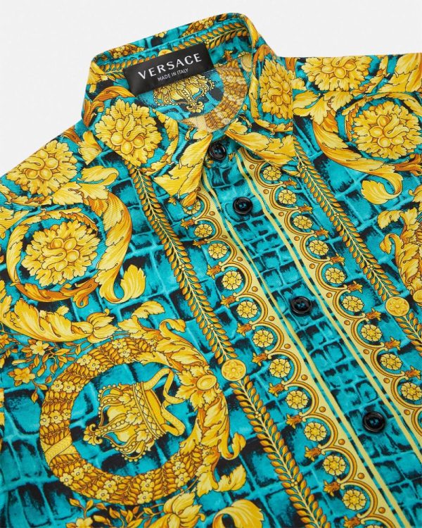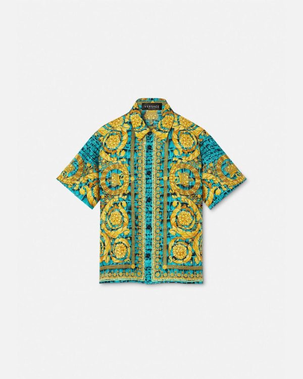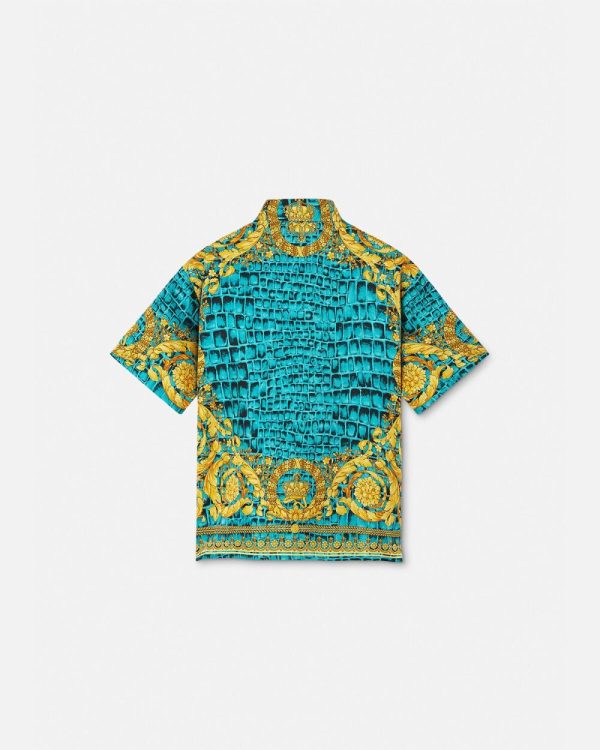 A short sleeved shirt crafted from silk twill featuring the Baroccodile Kids print.