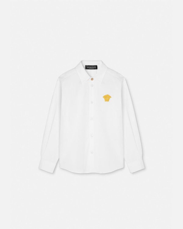 This long-sleeved shirt is crafted from cotton poplin and features a Medusa embroidery at the chest and Medusa hardware.