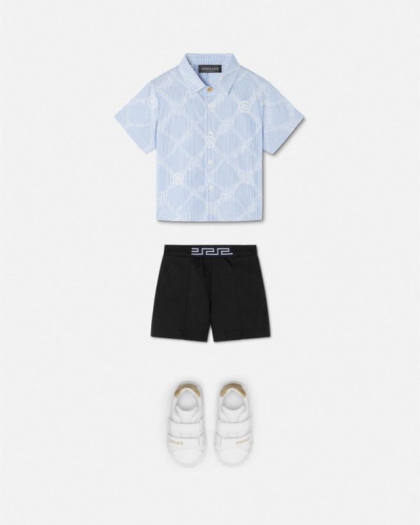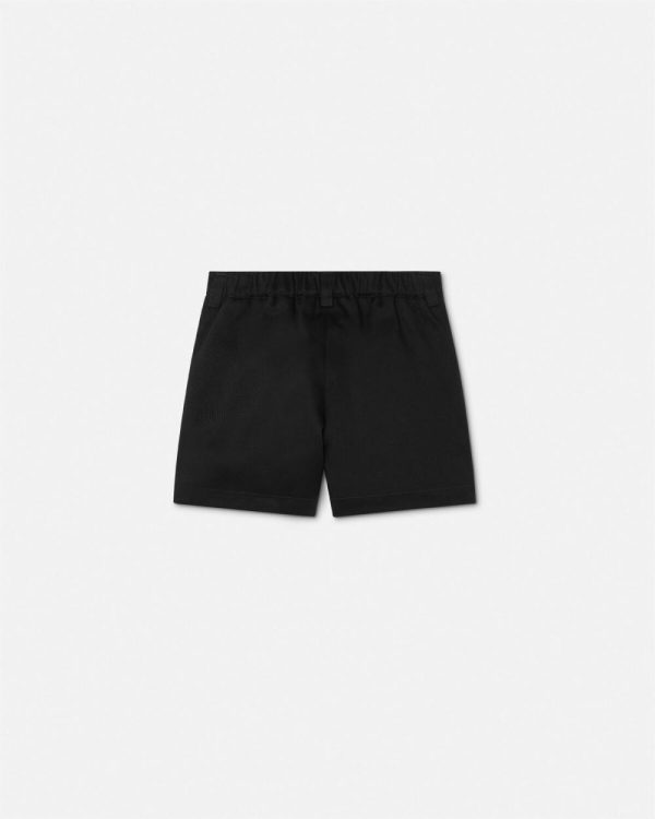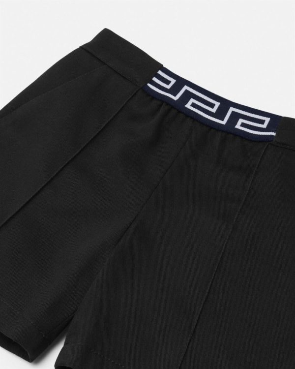 Gabardine cotton shorts featuring a Greca elastic insert at the front and a back elastic waistband for a comfortable wear.