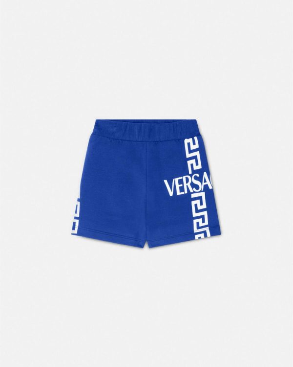 Playground ready, these comfy shorts are crafted from soft, stretch cotton. The style is embellished with contrast color Greca and logo accents.
