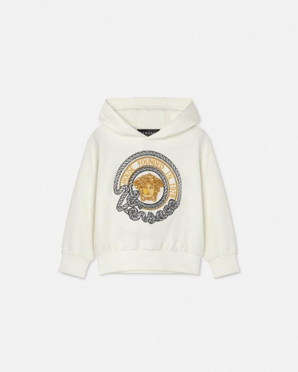 A comfortable hooded sweatshirt featuring an embroidered Medusa encircled by the Versace logo in a nautical rope motif at the front.