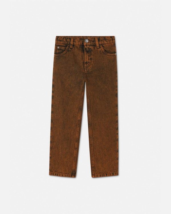 These jeans in a five-pocket design are made from cotton denim and are accented by Medusa hardware and a back leather patch.