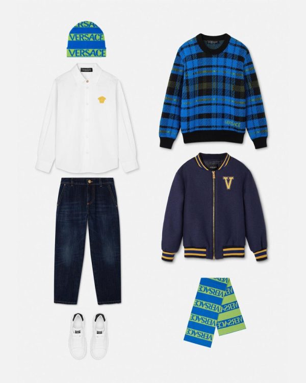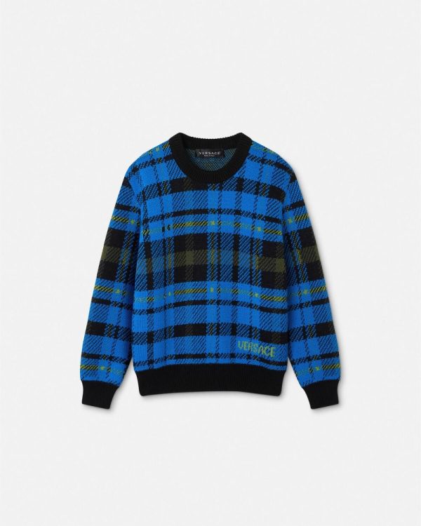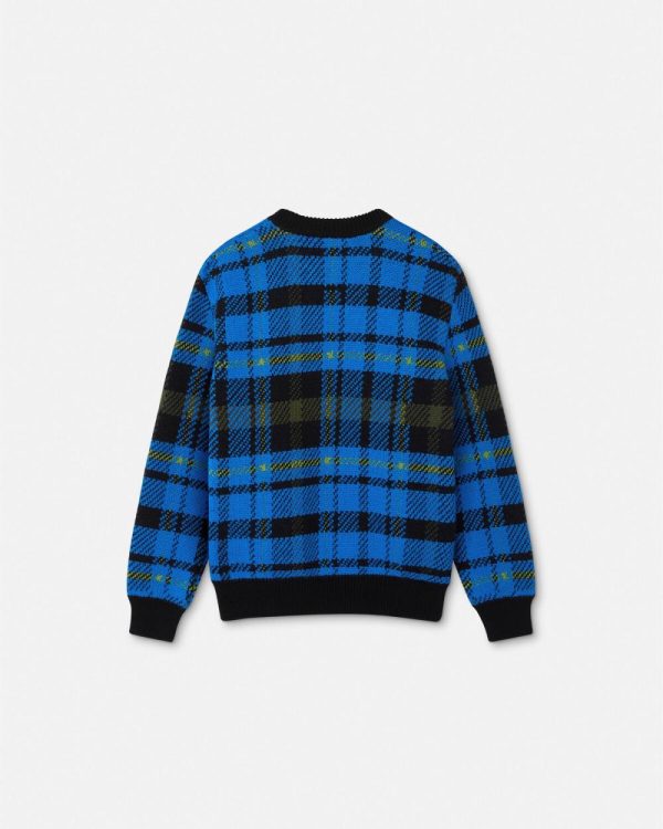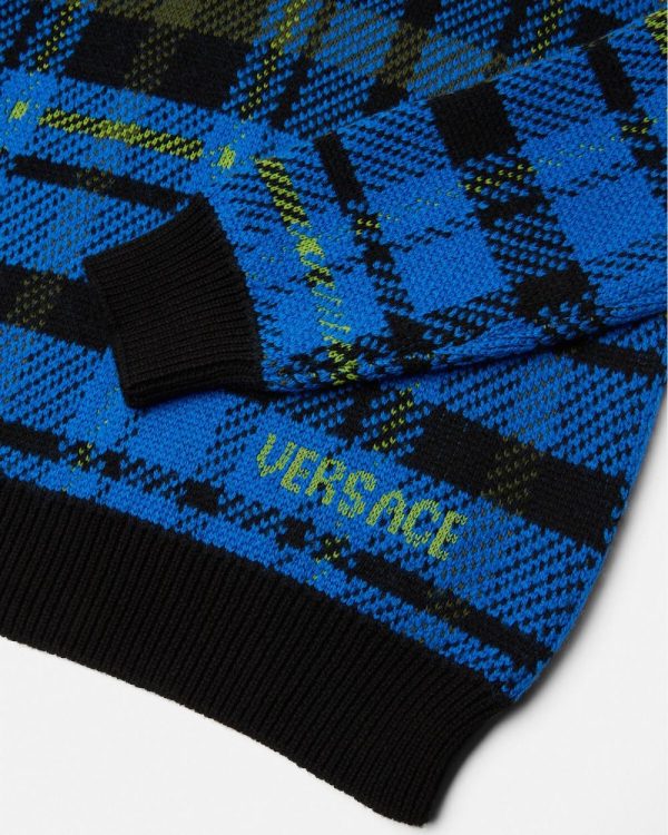 This knitted sweater with a comfortable fit features the Tartan Kids print and a Versace Logo at the side.