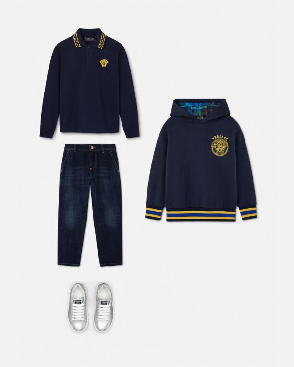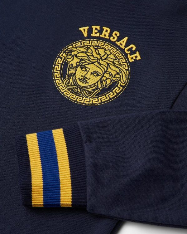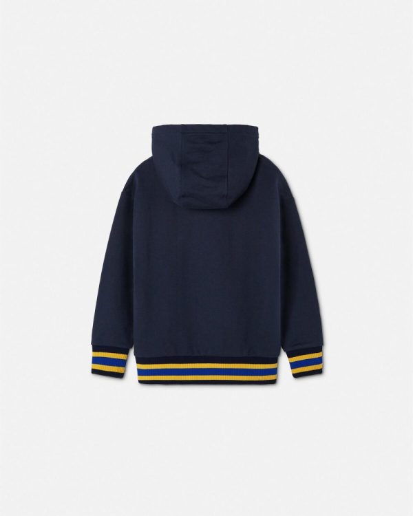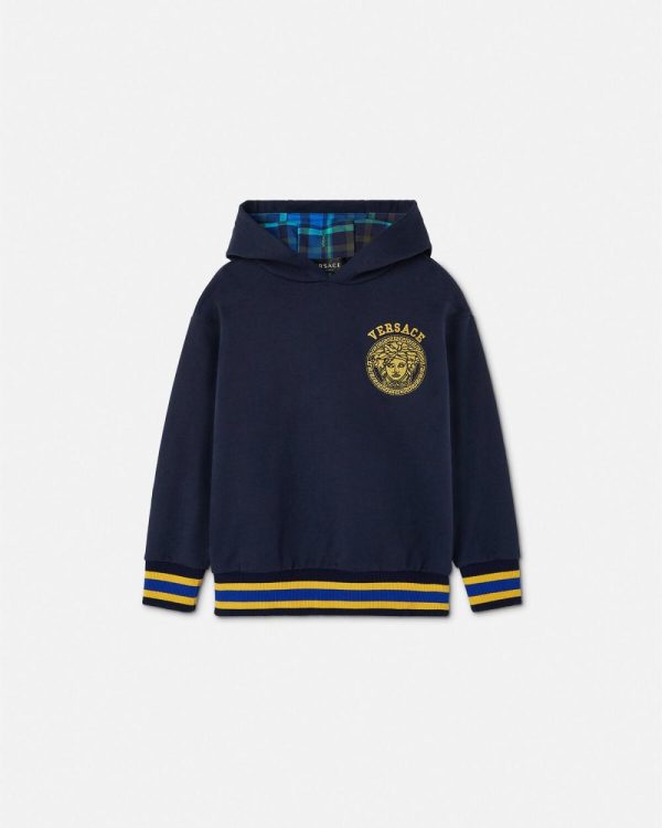 This varsity-style hoodie features the Tartan Kids print at the hood lining and a Medusa Kids embroidery at the chest.