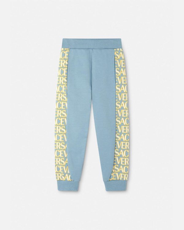 Cotton sweatpants featuring an elasticized waistband and cuffs, complete with the Versace Allover Kids print at the sides.