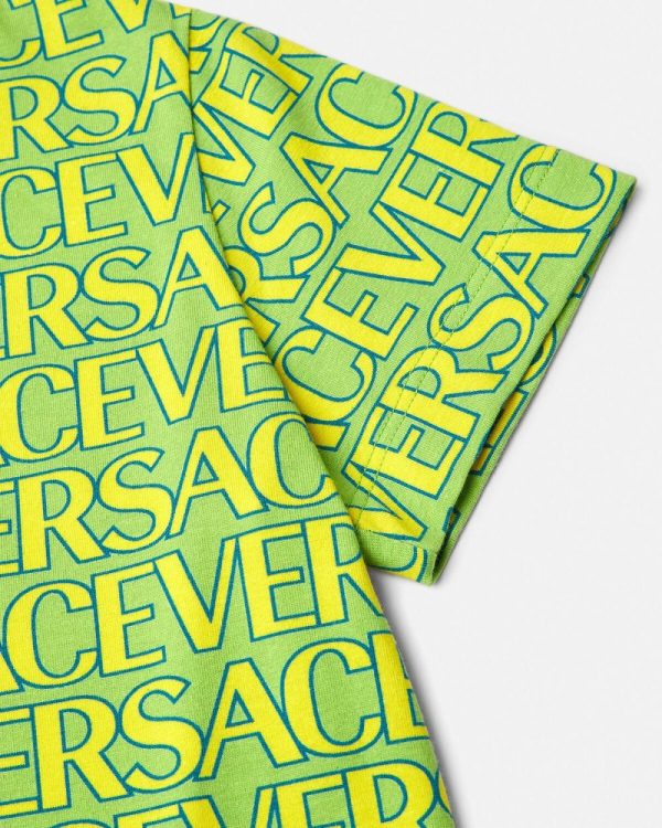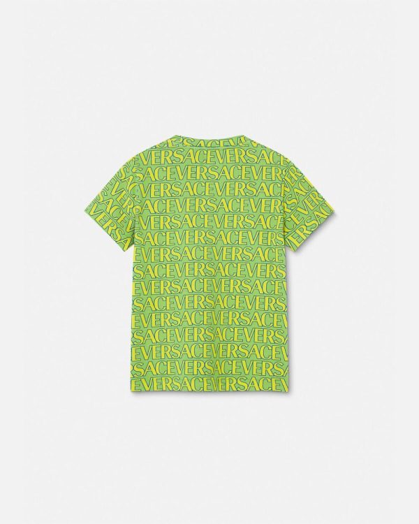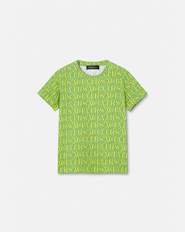 A short-sleeved cotton T-shirt featuring a Versace Allover Kids print.