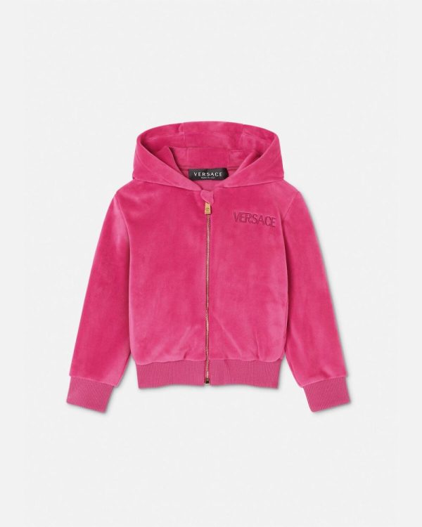 Clothing | Children Versace Versace Logo Baby Velvet Hoodie Fuchsia