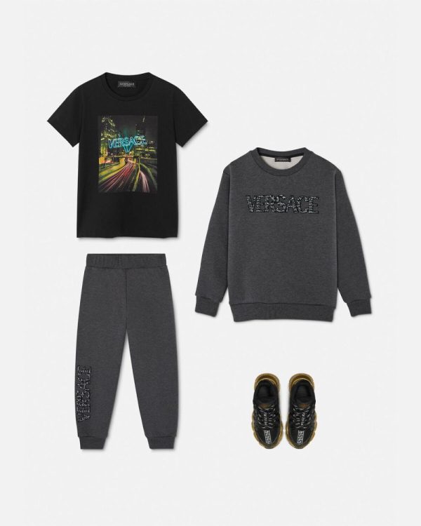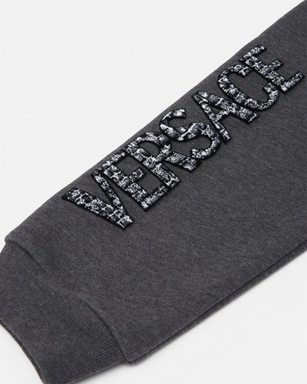 These cotton jersey sweatpants feature a velvet Versace Logo at the leg in the Coccodrillo Kids print. This relaxed style is finished with ribbed trims and has a soft brushed fleece lining.