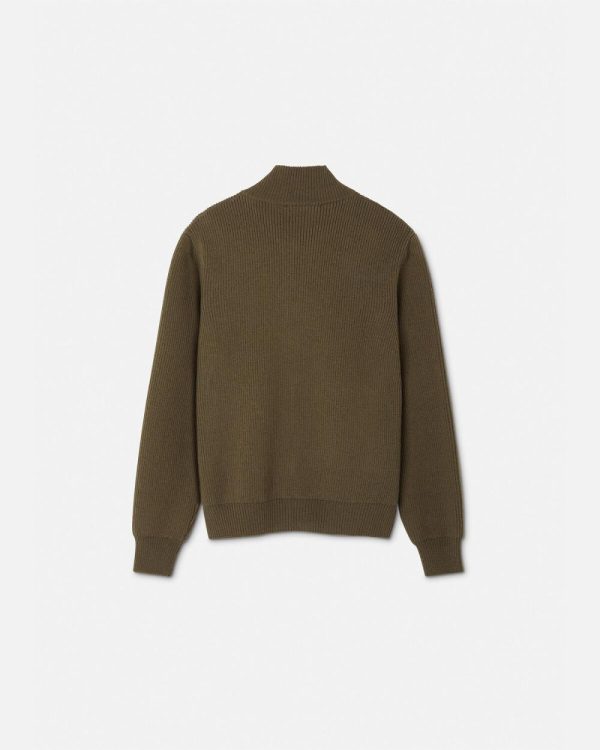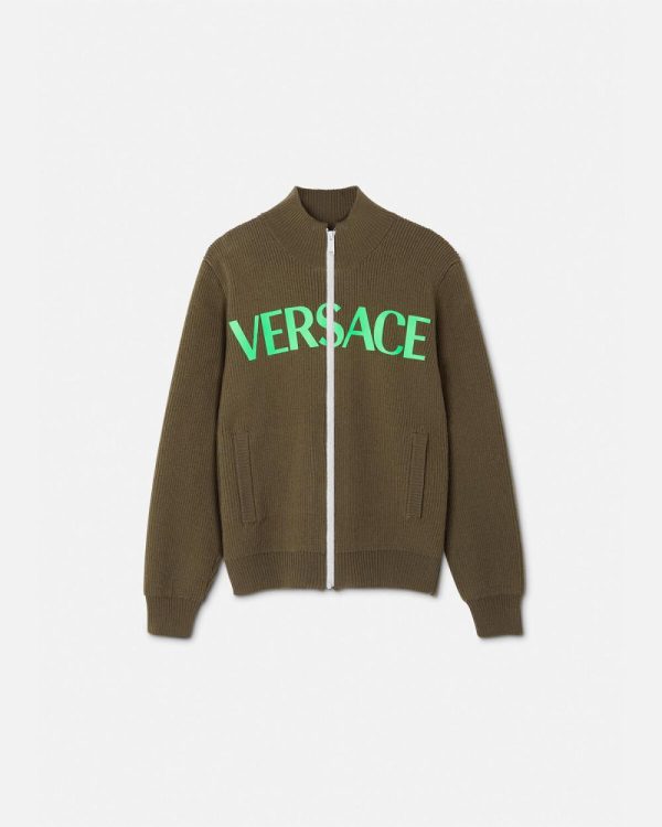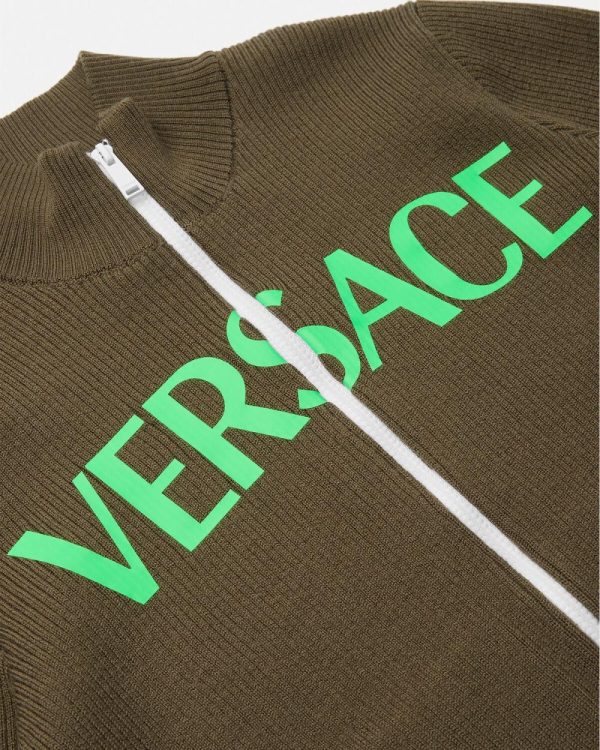 This versatile zip-up turtleneck sweater has a Versace Logo Kids at the front and a contrast zip closure. The knitwear design is finished by side pockets.