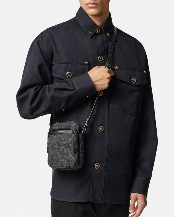 Crossbody & Messenger Bags | Men Versace Barocco Athena Crossbody Bag Blackprint