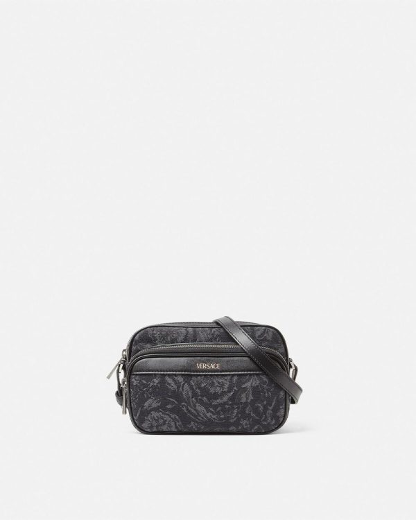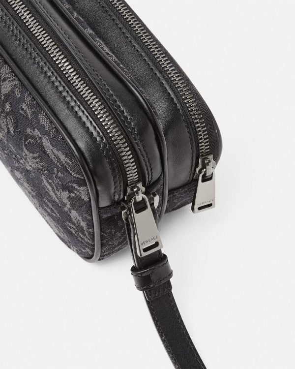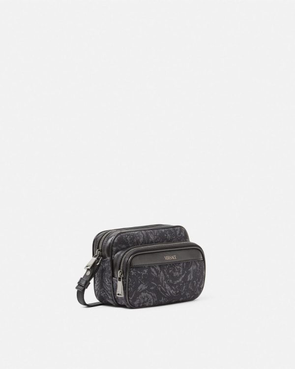 Zipped messenger bag crafted from Barocco jacquard with leather trims that features an adjustable shoulder strap and is accented with a logo at the front.