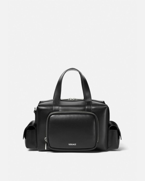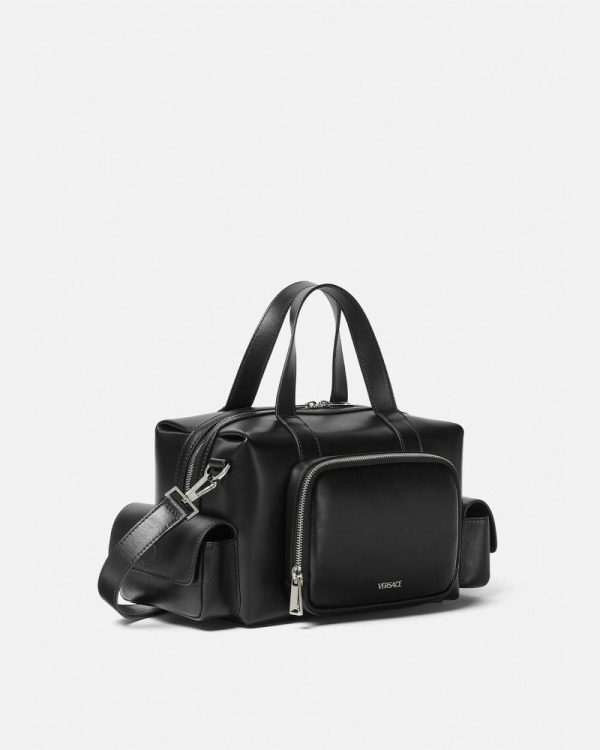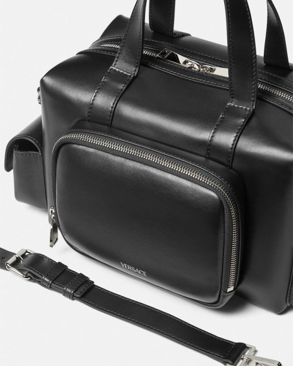 This leather camera bag features a spacious interior and multiple external pockets. The versatile design is completed by top handles and an adjustable strap to allow crossbody, shoulder and hand carry options.