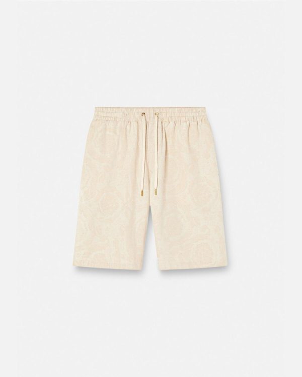 Denim | Men Versace Barocco Silhouette Chambray Shorts Beige