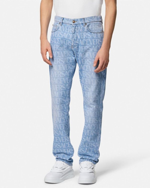 Denim | Men Versace Versace Allover Regular-Fit Jeans Blue