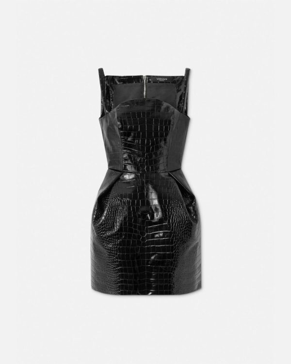 Dresses | Women Versace Croc-Effect Leather Mini Dress Black