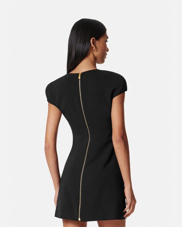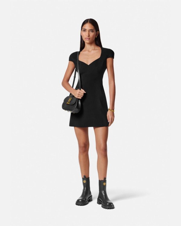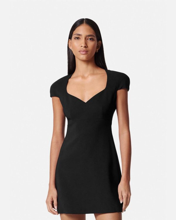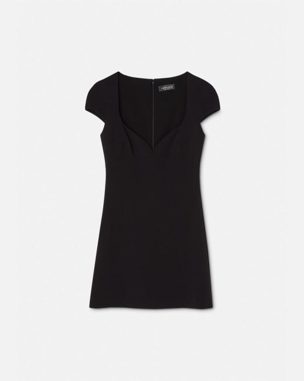 Crafted in a shift silhouette, this mini dress an elegant, sweetheart neckline and short cap sleeves.
