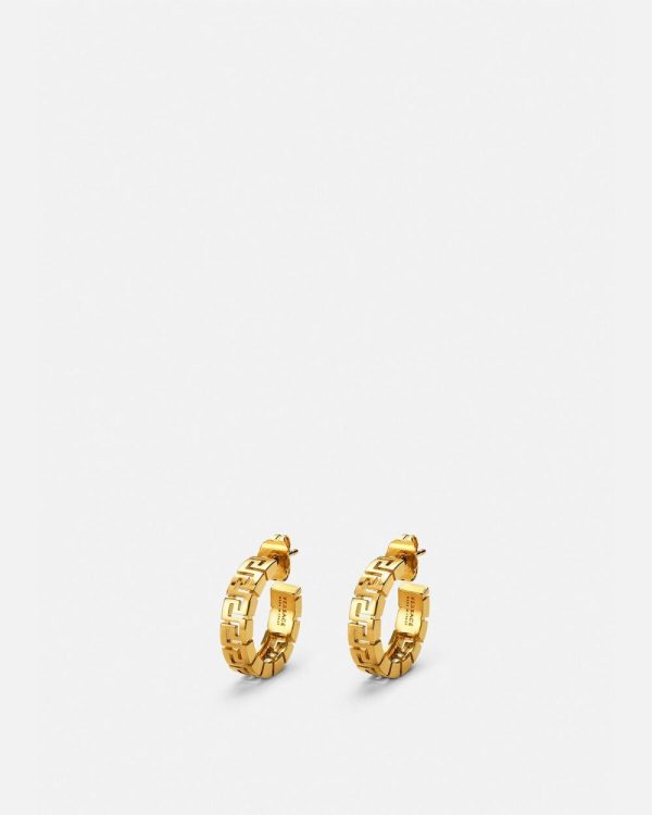 A subtle statement of style, these hoop earrings boast an iconic Greca pattern. All Versace Jewelry items are lead and nickel free. All materials are hypoallergenic.