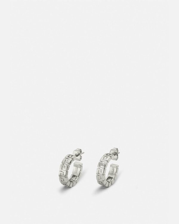 Earrings | Women/Men Versace Greca Hoop Earrings Silver