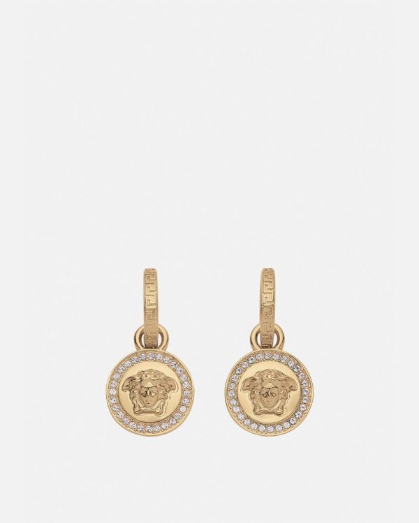 Crystal-embellished drop earrings featuring La Medusa charms and Greca engravings. All Versace jewelry products are lead and nickel free. All materials are hypoallergenic.