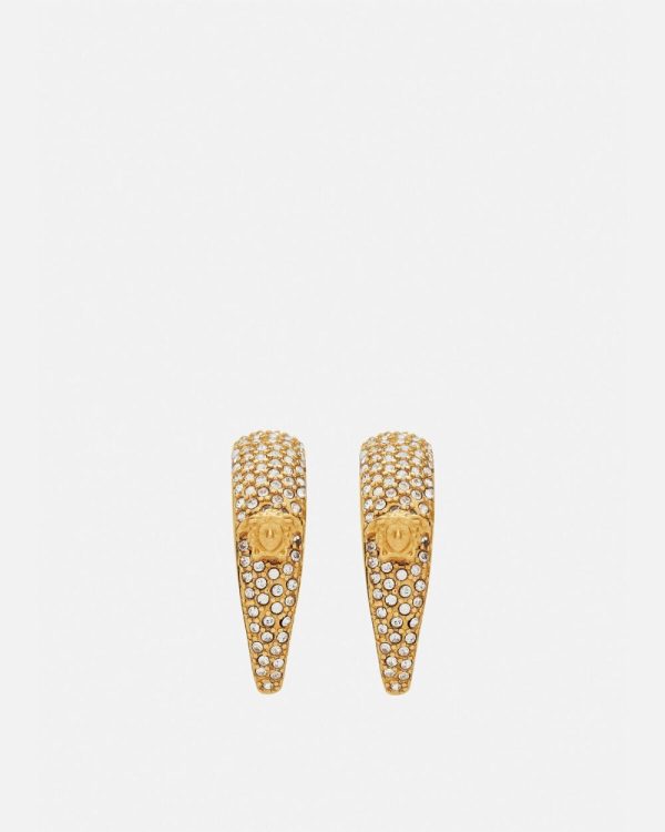 Crystal embellished moon-shaped earrings inspired by galactic elements from the Versace Galaxy line. All Versace jewelry products are lead and nickel free. All materials are hypoallergenic.