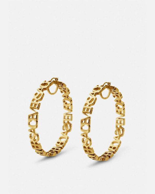 These hoop earrings feature an openwork design with Versace logo lettering. All Versace jewelry products are lead and nickel free. All materials are hypoallergenic.